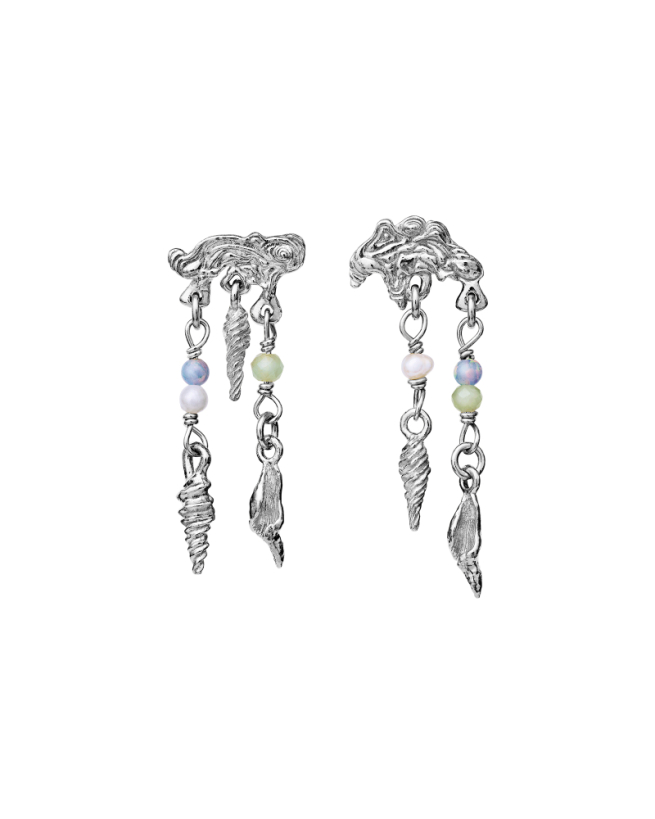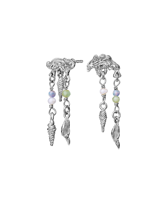 Beskrivelse: Ewania øreringene er inspireret af varme dage på stranden med havvandsinspirerede farveglimt fra blå opaler, akvamariner og ferskvandsperler.