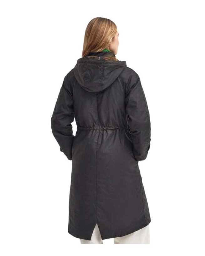 Beskrivelse: Smuk jakke i et længere design med quiltet foring, der sikrer komfort og varme. Jakken har fast hætte, feminint fiskehalebagstykke og to klassiske lommer med god plads. Afsluttet med diskret Barbour-branding på venstre lomme – en stilfuld jakke, der kombinerer funktionalitet og tidløst design.