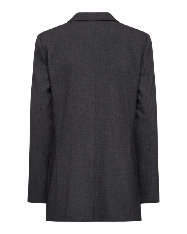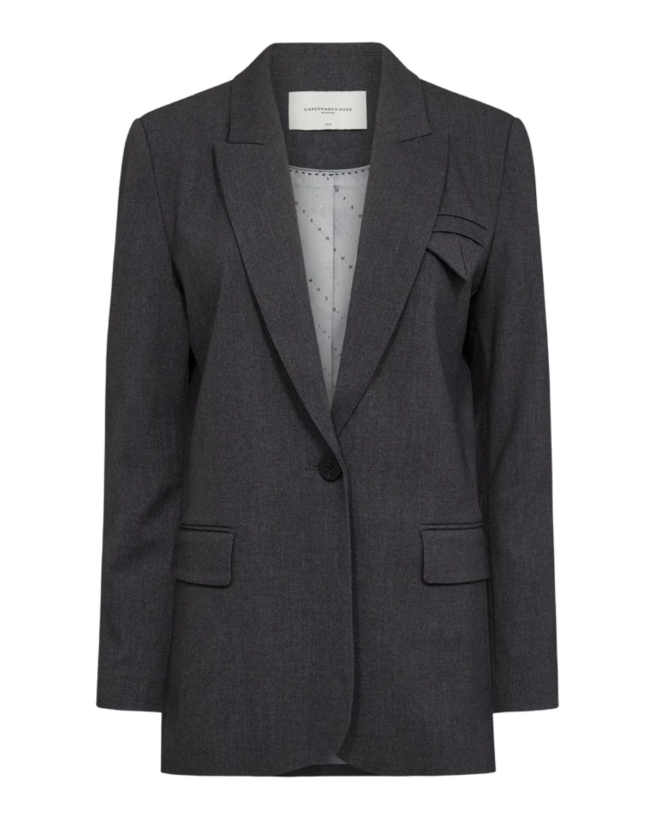 Beskrivelse: En jakke i ikonisk Tailor-kvalitet med logomønstret foring og brede skuldre. Den har V-udskæring med revers, knaplukning, frontlommer, slids bagpå og en regulær pasform, der elegant fremhæver taljen.
