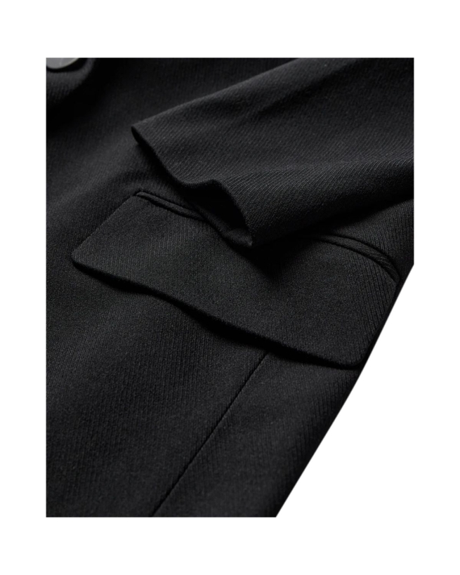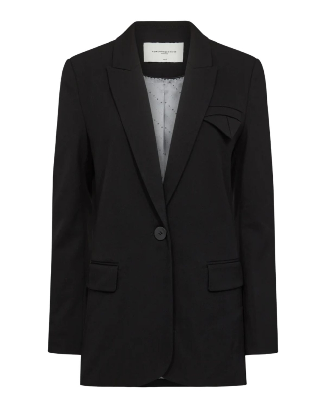 Beskrivelse: En jakke i ikonisk Tailor-kvalitet med logomønstret foring og brede skuldre. Den har V-udskæring med revers, knaplukning, frontlommer, slids bagpå og en regulær pasform, der elegant fremhæver taljen.