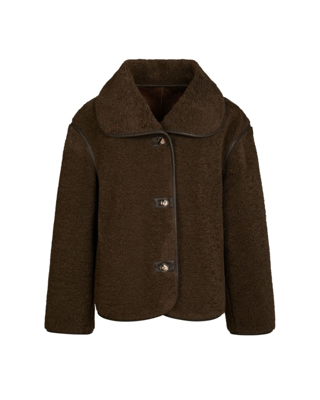 Beskrivelse: Cool, kort loose-fit jakke i blødt teddy-materiale – perfekt til efterårets kølige dage. Jakken har en stilfuld knappelukning, fine detaljer i faux leather og praktiske sidelommer. Et moderne og afslappet udtryk, der kombinerer komfort med kant.
