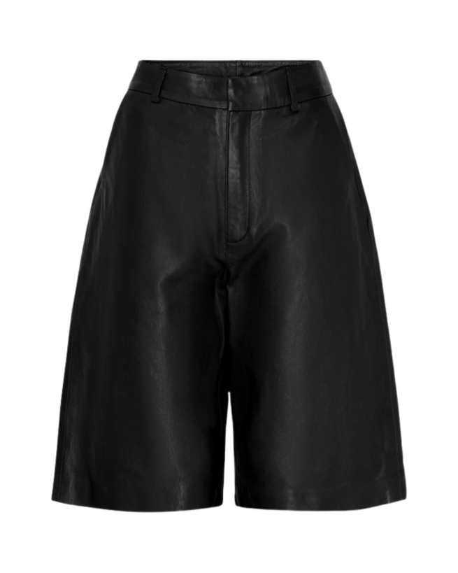 Beskrivelse: Bermuda lædershorts i blødt og eksklusivt lammeskind. De lukkes med en klassisk bukselukning i taljen og har en rå kant forneden, der giver et cool og uformelt udtryk. Perfekte til både hverdag og fest – brug dem med strømpebukser i vinterhalvåret og med bare ben, når temperaturen stiger. Uanset om du går efter et chikt look eller et afslappet outfit, passer disse lædershorts let ind i garderoben.