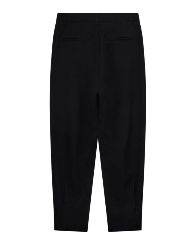 Beskrivelse: Et par elegante højtaljede bukser i eksklusiv kvalitet med løs pasform og ankellange ben. De har en skjult hægte- og lynlåslukning, praktiske sidelommer samt fine læg, der skaber en let indsnævret og sofistikeret silhuet.