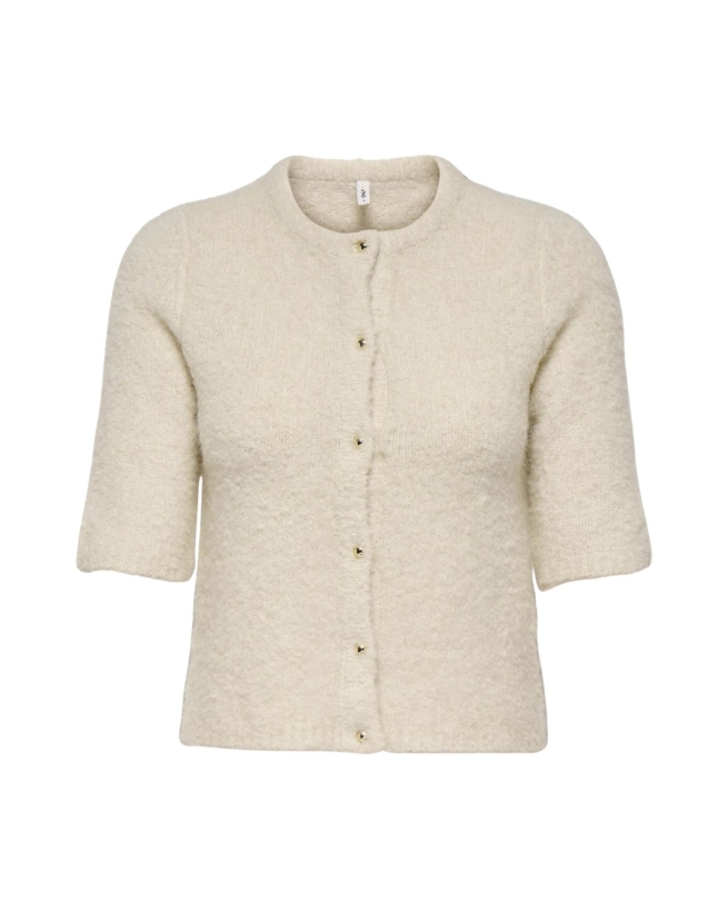 Beskrivelse: Fuldend dit look med en strikket cardigan, der er essentiel i enhver garderobe og perfekt til både vinterdage og sommeraftener. Cardiganen har en klassisk O-hals, korte ærmer og knaplukning foran, hvilket giver en komfortabel regular fit.