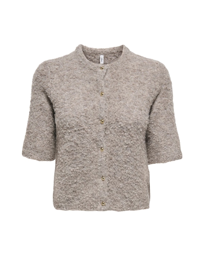 Beskrivelse: Fuldend dit look med en strikket cardigan, der er essentiel i enhver garderobe og perfekt til både vinterdage og sommeraftener. Cardiganen har en klassisk O-hals, korte ærmer og knaplukning foran, hvilket giver en komfortabel regular fit.