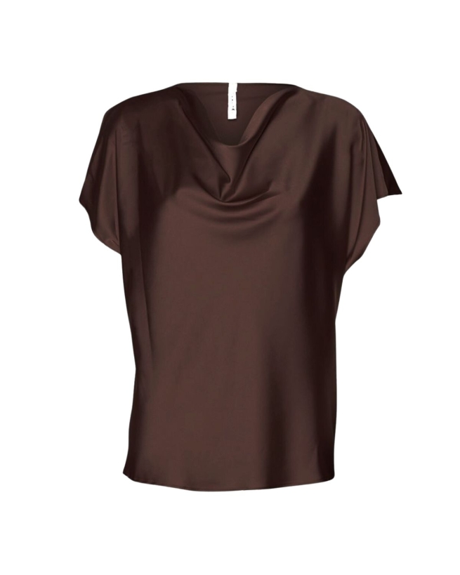 Elegant bluse fra Imperial i et blankt, luksuriøst materiale, der falder smukt langs kroppen. Den fine vandfaldsudskæring giver et feminint udtryk, og det løstsiddende ærme skabt af det draperede skulderfald tilfører et eksklusivt og sofistikeret look.Materiale: 97% Polyester, 3% Elastane