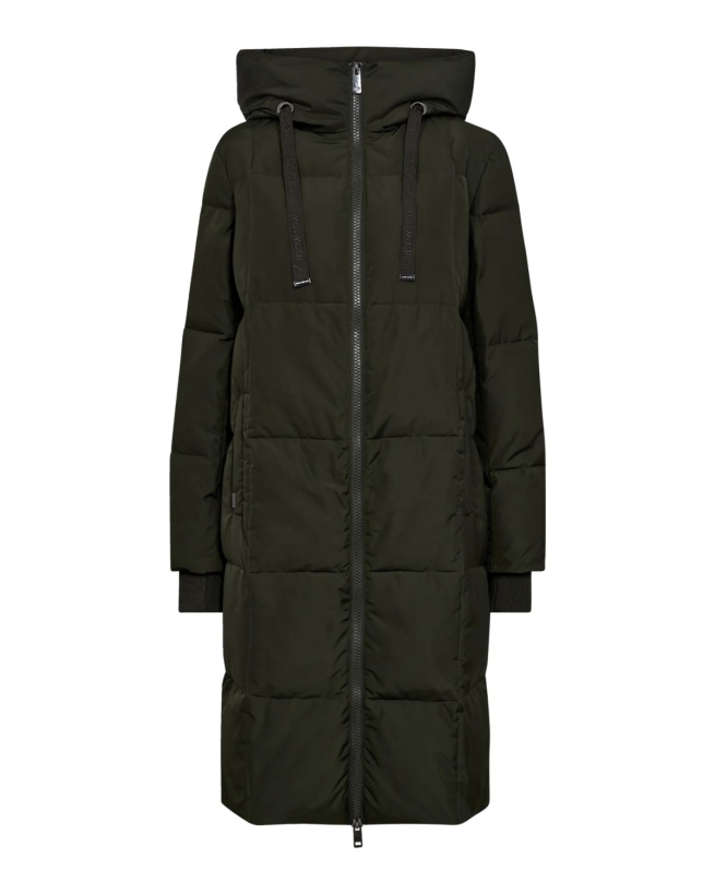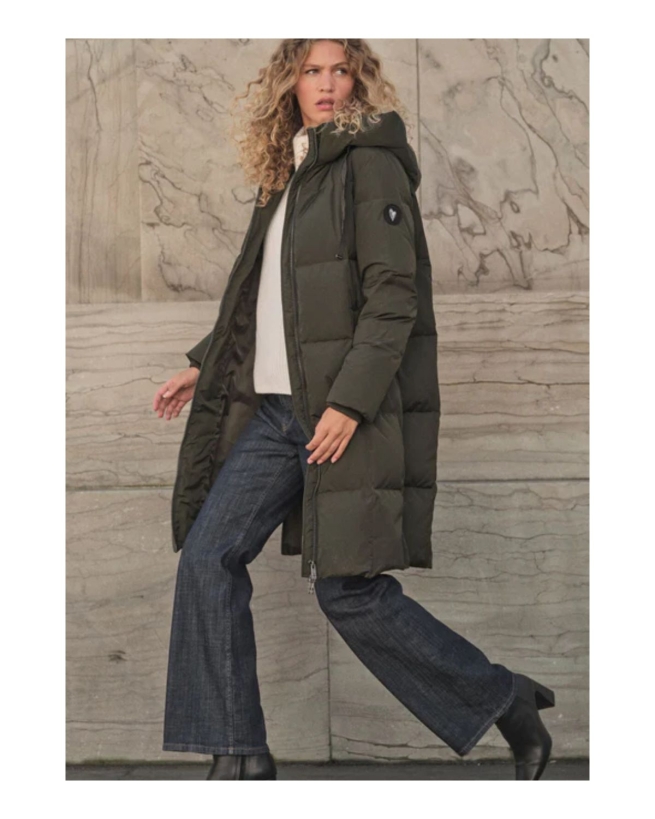 BESKRIVELSE: Hold kulden ude med vores elskede Nova frakke. Denne sæson har den fået en upgrade i form af ternede paneler i blød dun. Den høje krave med snøreluk og hætte sørger for, at du kan holde varmen. Den stærke lynlås kan åbnes fra bunden, hvilket giver mere fleksibilitet på farten. Lynlåsene i siden er perfekte til dig, der cykler på arbejde. Frakken har et let feel takket være det ansvarligt producerede dun. Brug den til alt!