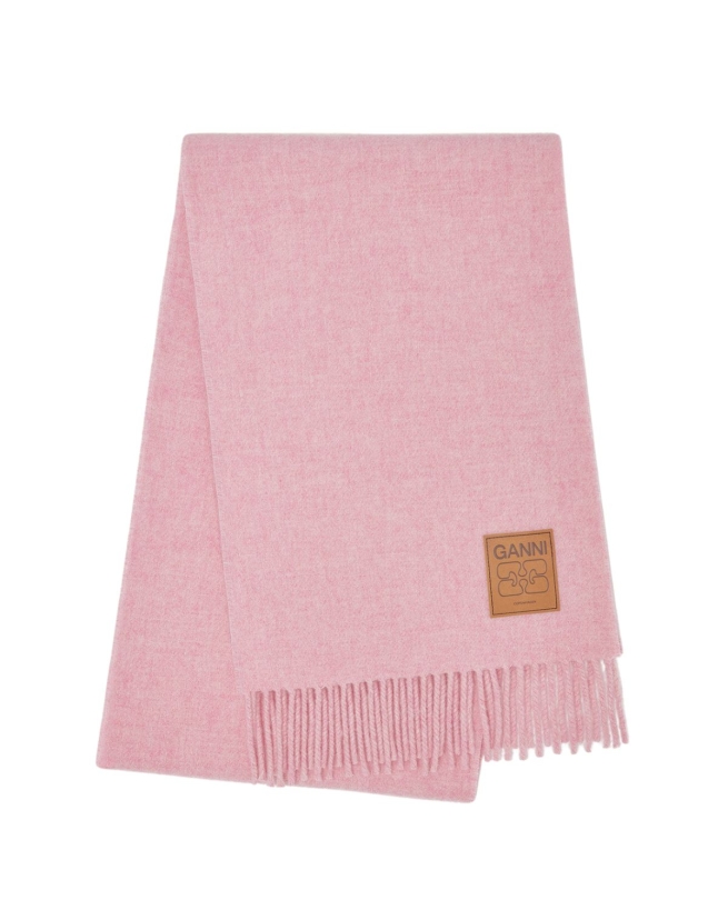 Beskrivelse: Halstørklæde i uld med Ganni logo og frynsekanter