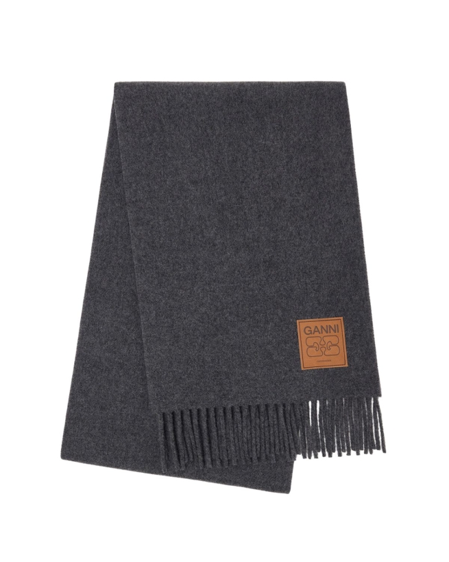 Beskrivelse: Skøn halstørklæde i uld med Ganni logo og frynsekanter