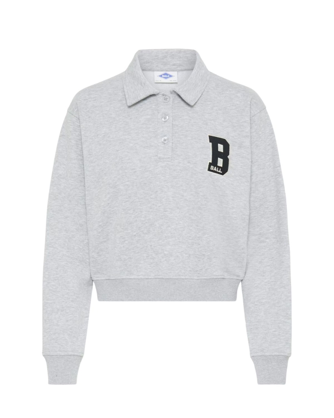 En kort sweatshirt med et enkelt og sporty udtryk. Den har en lige pasform, polokrave med tre knapper, ribkanter og en markant bogstavdetalje på brystet. Perfekt til et casual hverdagslook.Materiale: 100% Bomuld