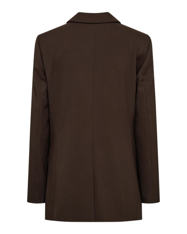 Beskrivelse: En jakke i ikonisk Tailor-kvalitet med logomønstret foring og brede skuldre. Den har V-udskæring med revers, knaplukning, frontlommer, slids bagpå og en regulær pasform, der elegant fremhæver taljen.