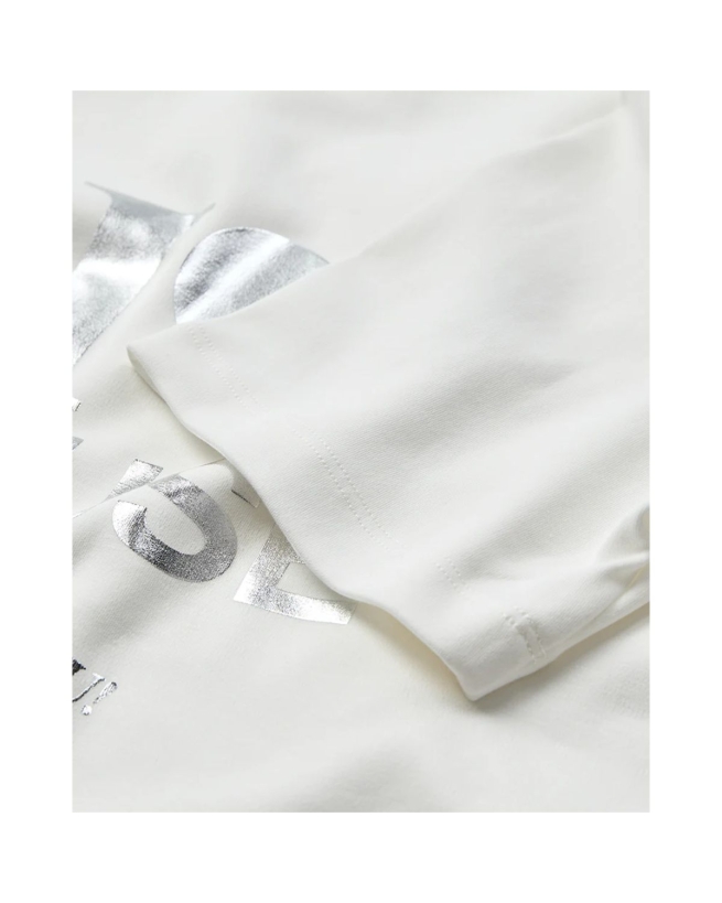 Beskrivelse: En T-shirt i eksklusiv kvalitet med rund hals og korte ærmer. Den er pyntet med et elegant, skinnende print på brystet, der giver et sofistikeret og stilfuldt touch.