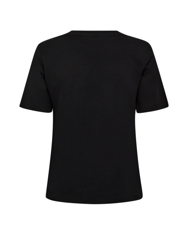 Beskrivelse: En T-shirt i eksklusiv kvalitet med rund hals og korte ærmer. Den er pyntet med et elegant, skinnende print på brystet, der giver et sofistikeret og stilfuldt touch.