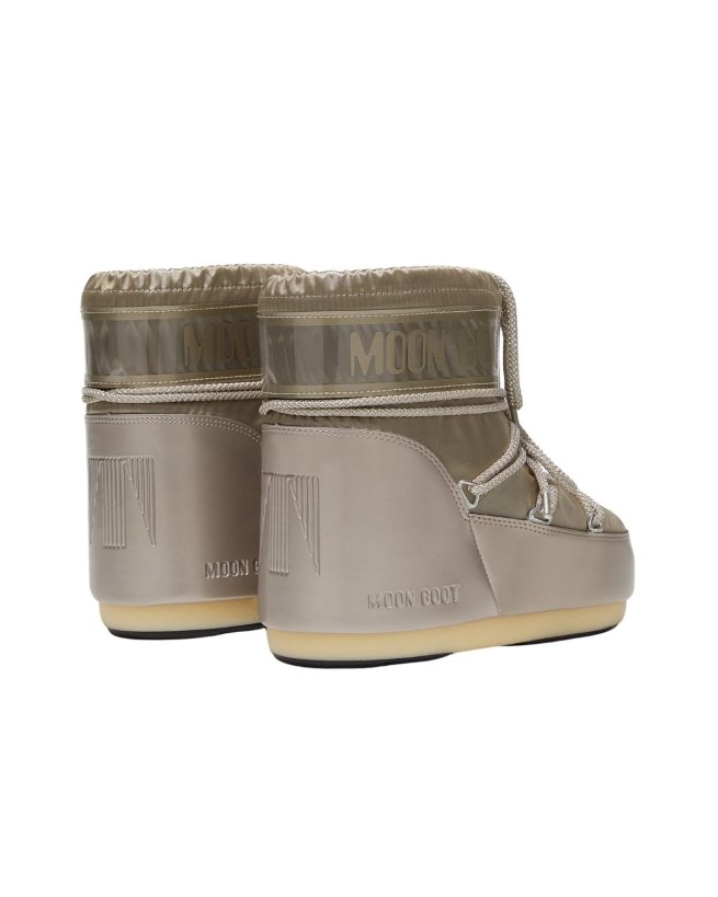 Beskrivelse: Ikke alt der glimter er guld… nogle gange er det en Moon Boot i glansfuld satin. Inspireret af månelandingen i 1969 er Icon-designet skabt med reference til astronauternes højteknologiske udstyr. Støvlen har alle de klassiske kendetegn: isolering, let mellemsål og en gummisål med sugekoplignende mønster, der sikrer optimalt fodfæste.