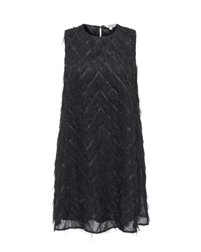 Faye Life SL Feather Kjolen fra Only er en elegant og festlig kjole med glitrende detaljer, perfekt til særlige lejligheder. Den er designet med rund hals, ærmeløs silhuet og en løs pasform, hvilket giver komfort og bevægelsesfrihed. Knaplukningen i nakken gør det nemt at tage kjolen på, og den lette, genanvendte polyester skaber et bæredygtigt og smukt fald.