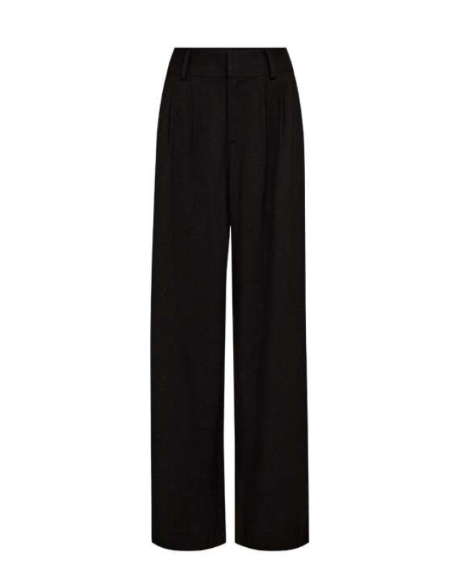 Sorte bukser med let shine og elegant snit. Fremstillet i blød blanding af polyester, viscose og elastan, der giver komfort og let stretch, perfekt til både hverdag og festlige lejligheder.Pasform: Regular
