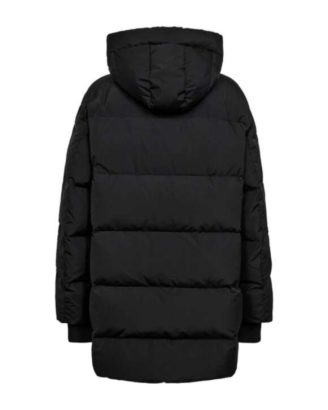 Denne elegante dunjakke kombinerer stil og funktion og er ideel til kølige efterårsdage. Den har en let afslappet pasform med høj krave og kraftig lynlås, mens det ultralette dunfyld holder dig varm. Den kortere længde giver et moderne udtryk og gør jakken nem at style med både kjoler og jeans.Materiale: 100% Post consumer recycled polyester | Fyld: 90% Dun, 10% Fjer