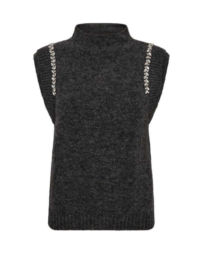 CMIBRA-WAISTCOAT er en elegant og strikket vest med høj hals og en regulær pasform, der giver et stilrent og eksklusivt udtryk. Den bløde kvalitet og fine finish gør den perfekt til både hverdag og sæsonens lag-på-lag looks.