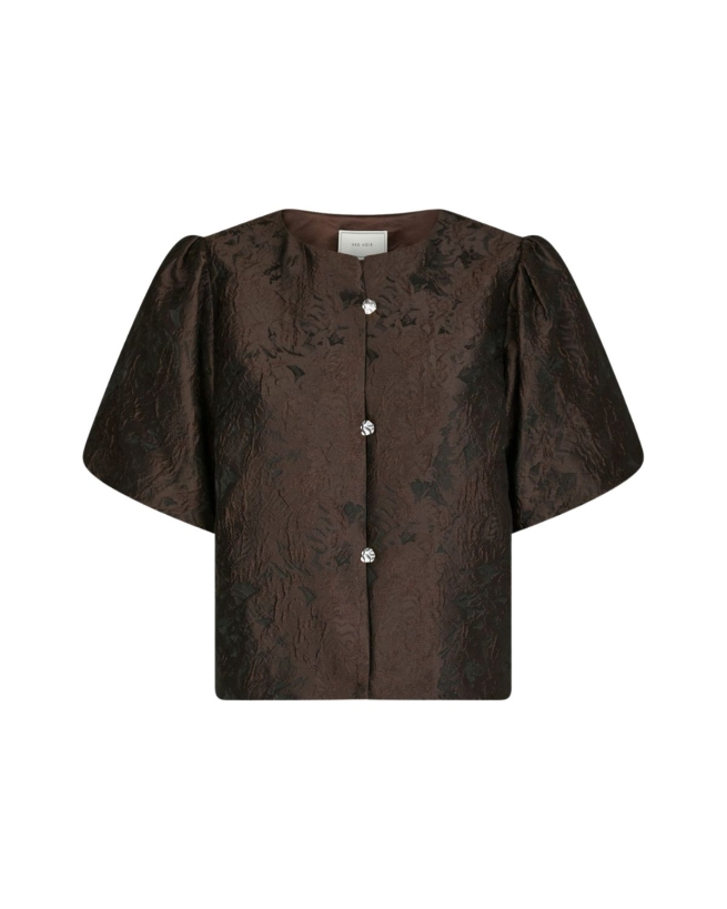 Bluse med pufærmer og knaplukning foran i en struktureret kvalitet, der også kan bruges som let jakke. Perfekt til både lag-på-lag styling og som enkeltstående statement-piece.