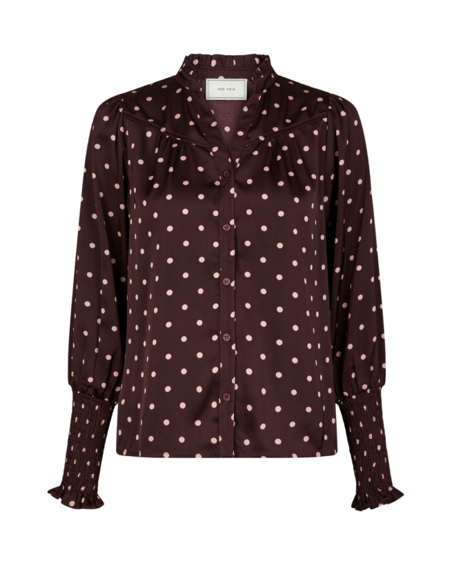 Feminine bluse med lange ærmer og et flatterende prikket mønster, der giver et let og elegant udtryk. Perfekt til både hverdagsbrug og festlige lejligheder.