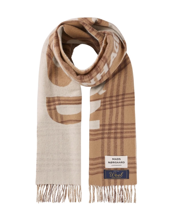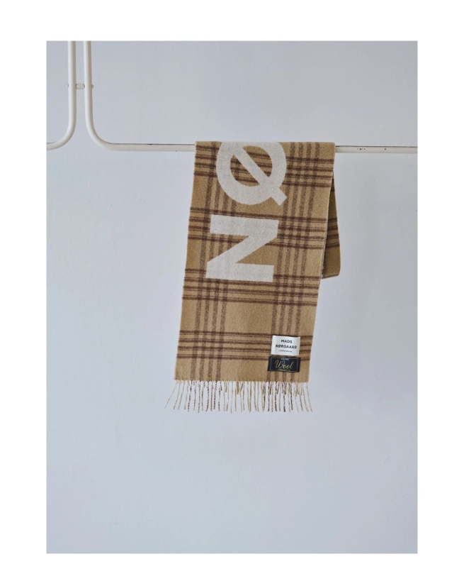 Blødt og glat uldhalstørklæde med frynser i begge ender, logo og logolabel, der giver varme og et stilfuldt udtryk. Perfekt til at fuldende vintergarderoben.