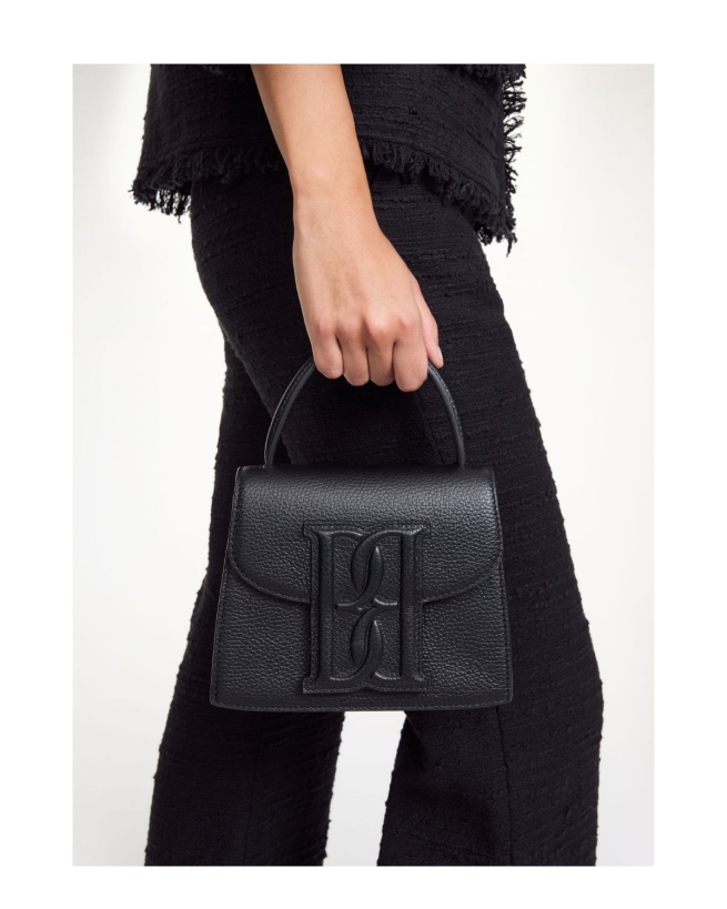 Ramil-tasken tilføjer et elegant, lady-like touch til ethvert outfit. Den er fremstillet i sæsonens kornede læder og har et top-håndtag, justerbar rem, magnetisk lukning, indvendig lomme samt husets monogram, hvilket kombinerer stil og funktionalitet. Tasken måler 15 x 19 x 6 cm, og remmen er 112 cm.Materiale: 100% læder