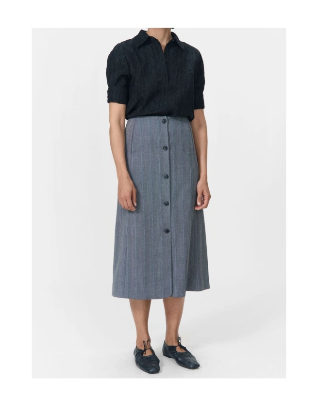 Reyna Skirt fra Lovechild 1979 er en ankellang nederdel i beige houndstooth med en elegant og tidløs stil. Nederdelen har en loose fit for en afslappet pasform, knappes foran og har praktiske lommer i kilerne. Med sit foret design er den både komfortabel og velegnet til både hverdag og festlige lejligheder.Materiale: 39% Uld, 33% Polyester, 14% Viskose, 13% Polyamid, 1% Elastan