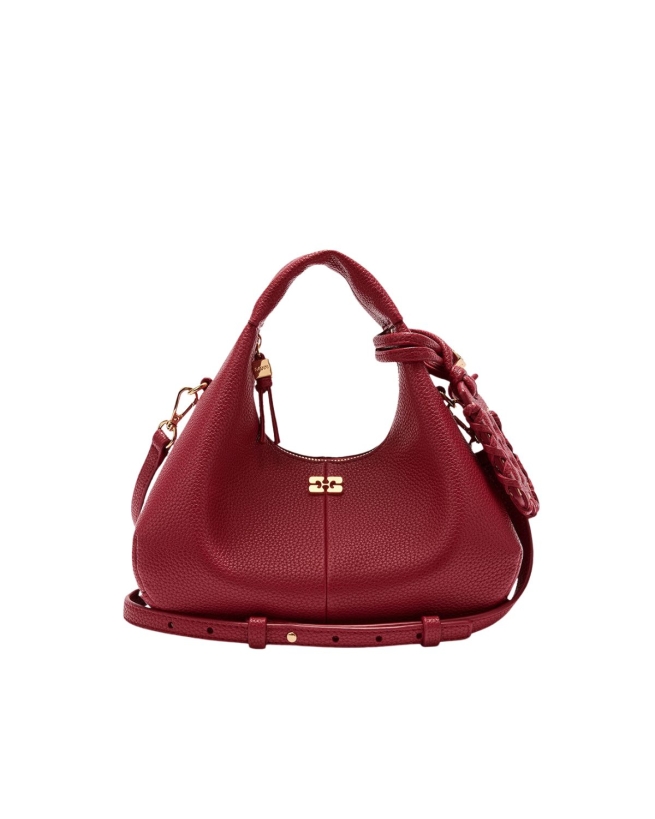 Praktisk møder stil med denne elegante GANNI-taske. Med hank foroven, justerbar og aftagelig skulderrem samt lynlåslukning er den både funktionel og chic. Tasken har et spejlvedhæng, indvendig kortlomme og ikoniske logo-detaljer, der giver et luksuriøst finish – perfekt til hverdagsbrug eller som statement-accessory.