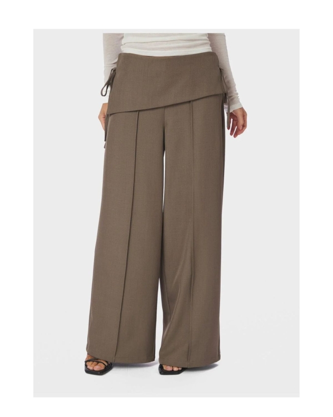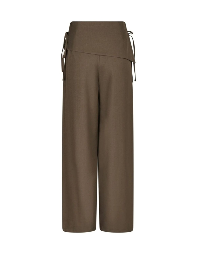 Flotte bukser fra Neo Noir i taupe med høj talje og en elegant, foldet linning, der bindes i siden. De har en løs, gulvlang pasform, dekorative syninger og praktiske lommer, som giver et moderne og komfortabelt look.